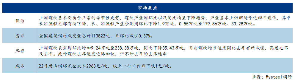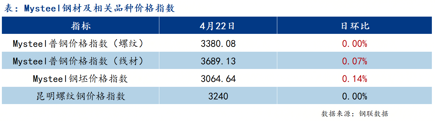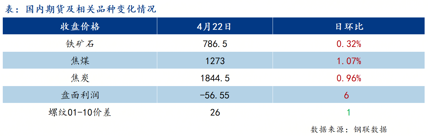 4月22日国内城市建筑钢材价格多数持稳运行,市场观望情绪浓厚。具体来看,早盘期螺偏强震荡运行,国内多数城市建筑钢材现货价格暂稳,部分需求于前一日提前释放,成交氛围一般。午后期螺延续偏强走势,终端对于高位资源认可度一般,现货探涨略显乏力,实际成交存在暗降出售的情况。近期宏观数据和基本面有所改善,3月份螺纹钢出口累积量121.19万吨,环比增长91%,出口量不断创新高,但近期雨水天气增多,终端需求疲软,市场观望情绪浓厚,预计近期建筑钢材现货价格或延续稳中偏强运行。全国建筑钢材成交量总计113822吨,日环比减少0.37%。