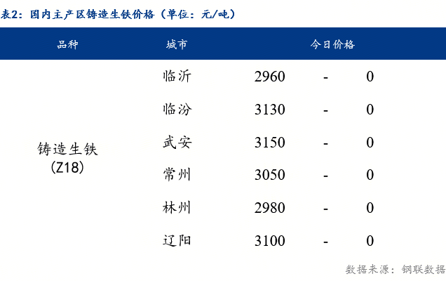 23日全国生铁价格持稳观望,市场成交偏弱。其中10城炼钢生铁L8-L10均价2667元/吨,较上一交易日价格持稳;10城铸造生铁Z18均价3050元/吨,较上一交易日价格持稳;8城球墨铸铁Q10均价3054元/吨,较上一交易日价格持稳。