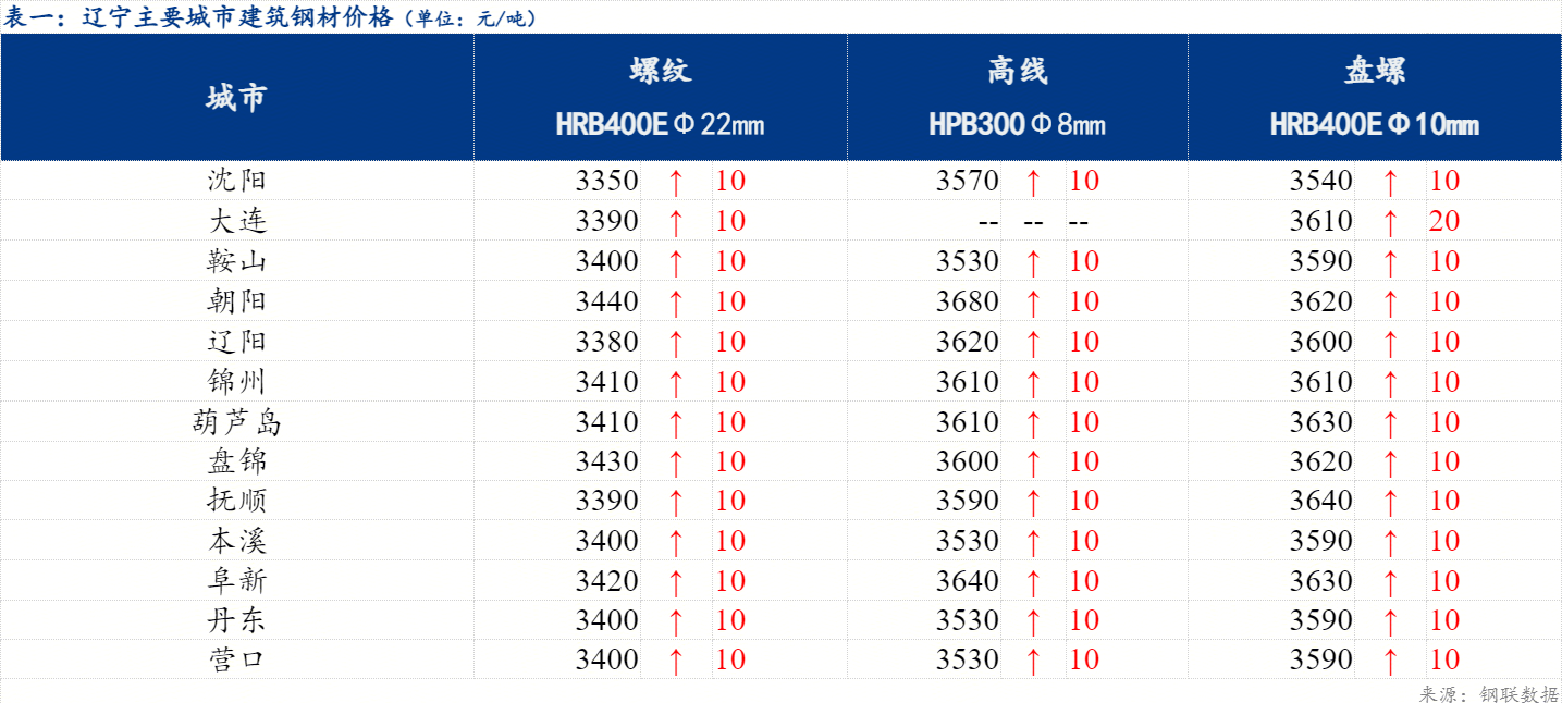 1、省内城市价格回顾:今日省内建筑钢材市场价格上涨,沈阳建筑钢材市场价格上涨 ,大连建筑钢材市场价格上涨,部分城市如朝阳和辽阳等市场均上涨10元/吨。