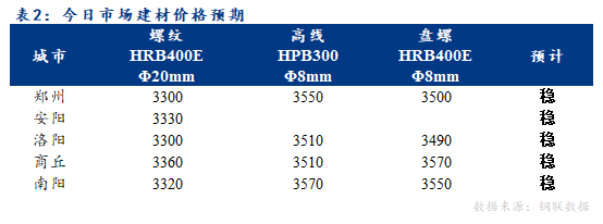 4、表列价格均为我的钢铁(850106)网前一日最后一次网价。