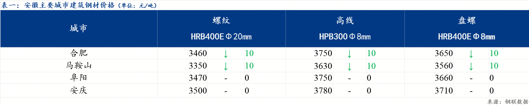 合肥市场:今日合肥市场价格下调10元/吨。马钢HRB400EΦ18mm螺纹钢直发送到主流成交价3290元/吨,马长江HRB400EΦ18mm螺纹钢直发送到主流成交价3230元/吨,河南闽源HRB400EΦ18mm螺纹钢直发送到主流报价3230元/吨。今日省内主导钢厂出厂价格暂稳,商家报价跟随,期螺全天走势稍弱,尾盘虽有拉涨,但今日商家更多还是积极销售为主。低价资源市场存在一定认可度,整体成交小幅增量。