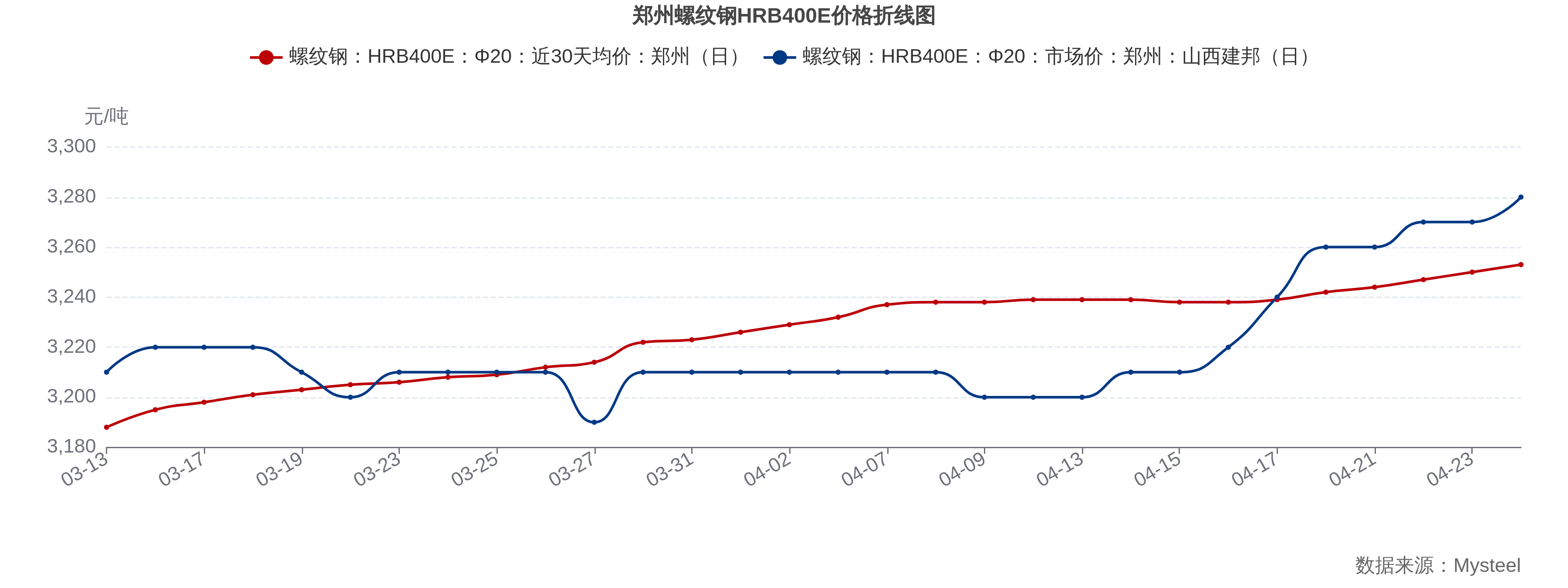 | 郑州 | 山西建邦 | HRB400E Φ20 | 3280 | +10 |