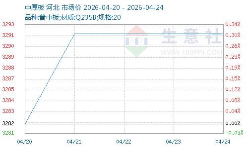 本周国内中厚板价格呈“周内单边上行、涨后持稳”的走势。周内价格上涨节奏明确,仅前半周完成抬升,后半周进入高位横盘阶段,市场情绪整体偏强。据生意社商品行情分析系统,普中板(材质:Q235B;规格:20)4月20日,价格为3282元/吨,日涨幅0.31%,为周内初始价格;4月21日,价格上涨0.30%至3292元/吨,完成周内主要涨幅;4月22-24日,价格稳定在3292元/吨,日涨跌幅维持0.00%,周内累计涨幅0.30%,价格中枢由3282元/吨上移至3292元/吨,延续了前期的上涨态势。