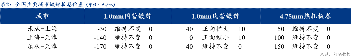【区域价差】国营资源:乐从-上海价差为-30元/吨,上海-天津价差为-140元/吨,乐从-天津价差为-170元/吨。民营资源:乐从-上海价差为40元/吨,上海-天津价差为0元/吨,乐从-天津价差为40元/吨。