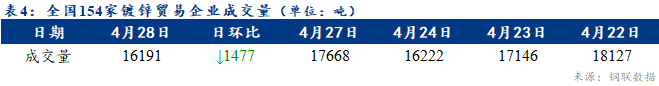 【成交情况】全口径154家镀锌企业出货量为16191吨,较上一交易日减少1477吨,减幅8.36%。