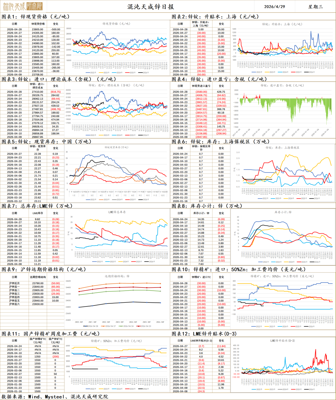 2.【泰克资源(TECK):一季度锌精矿产量减至120300吨 全年产量指导值不变】SHMET4月28日讯,泰克资源(TECK)有限公司(TECK)4月23日公布了其2026年未经审计的第一季度业绩。报告显示,第一季度锌精矿产量为120,300吨,比去年同期减少17,000吨,与Red Dog和Antamina的计划产量概况一致。在RedDog,由于矿石品位降低(符合矿山计划),第一季度锌精矿产量比去年同期减少10,600吨。第一季度锌精矿销量为69,700吨,比去年同期减少38,700吨,原因是RedDog的销量低于预期。2026年第一季度Red Dog的锌精矿销量为52,400吨,高于我们先前披露的指引范围的上限。公司维持2026年锌产量指导值不变。(上海金属网编译)