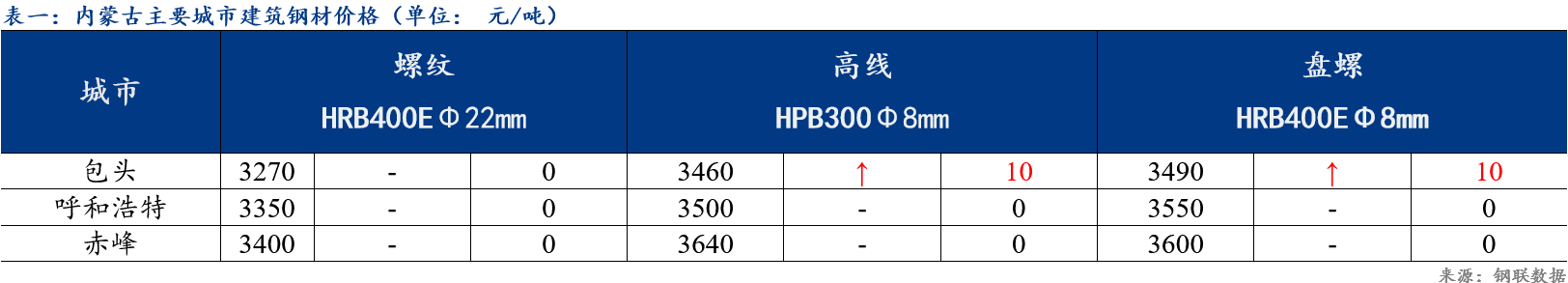 1、表列价格均为我的钢铁网当日最后一次网价;