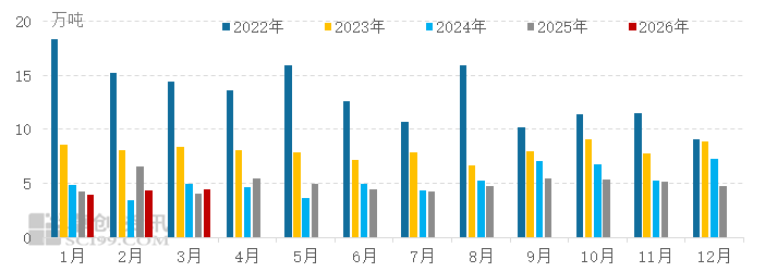 3月进口同环比均增多