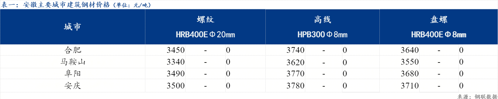 今日安徽区域建筑钢材价格暂稳运行,期螺红盘震荡,前期部分需求集中释放后,今日更多是稳价积极销售,整体小幅增量。主要市场来看: