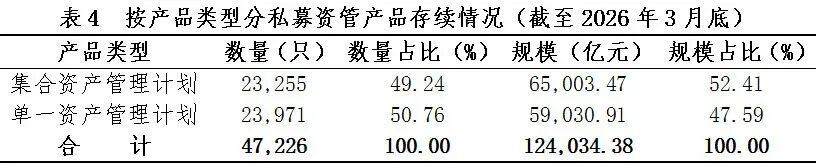从产品类型看,存续的单一产品与集合产品趋于平衡(见表4)。