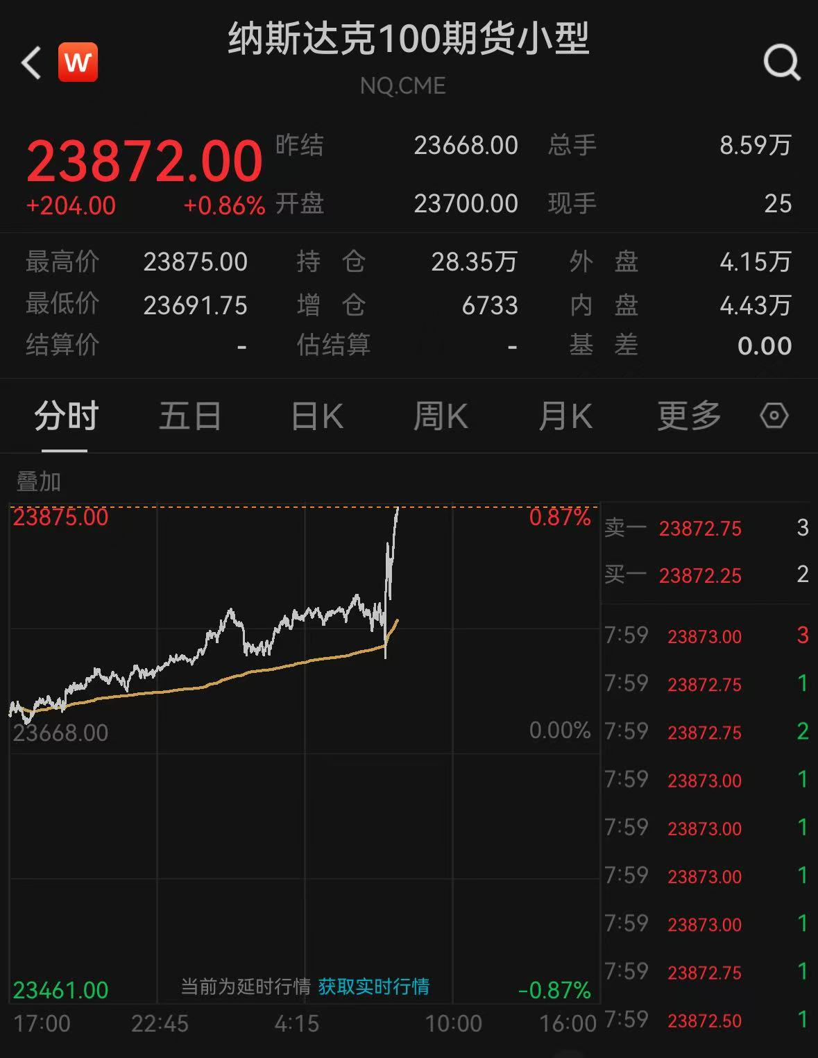 美股期货短线拉升,纳斯达克100指数期货涨幅扩大至0.86%。